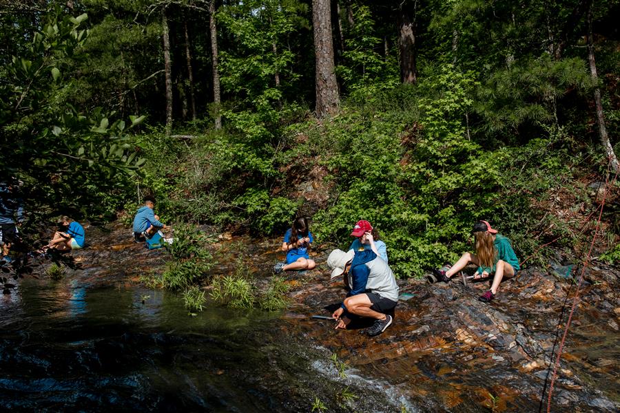 Geology class does some mining for Fool's Gold in the creek photo by Tamzen Bryant